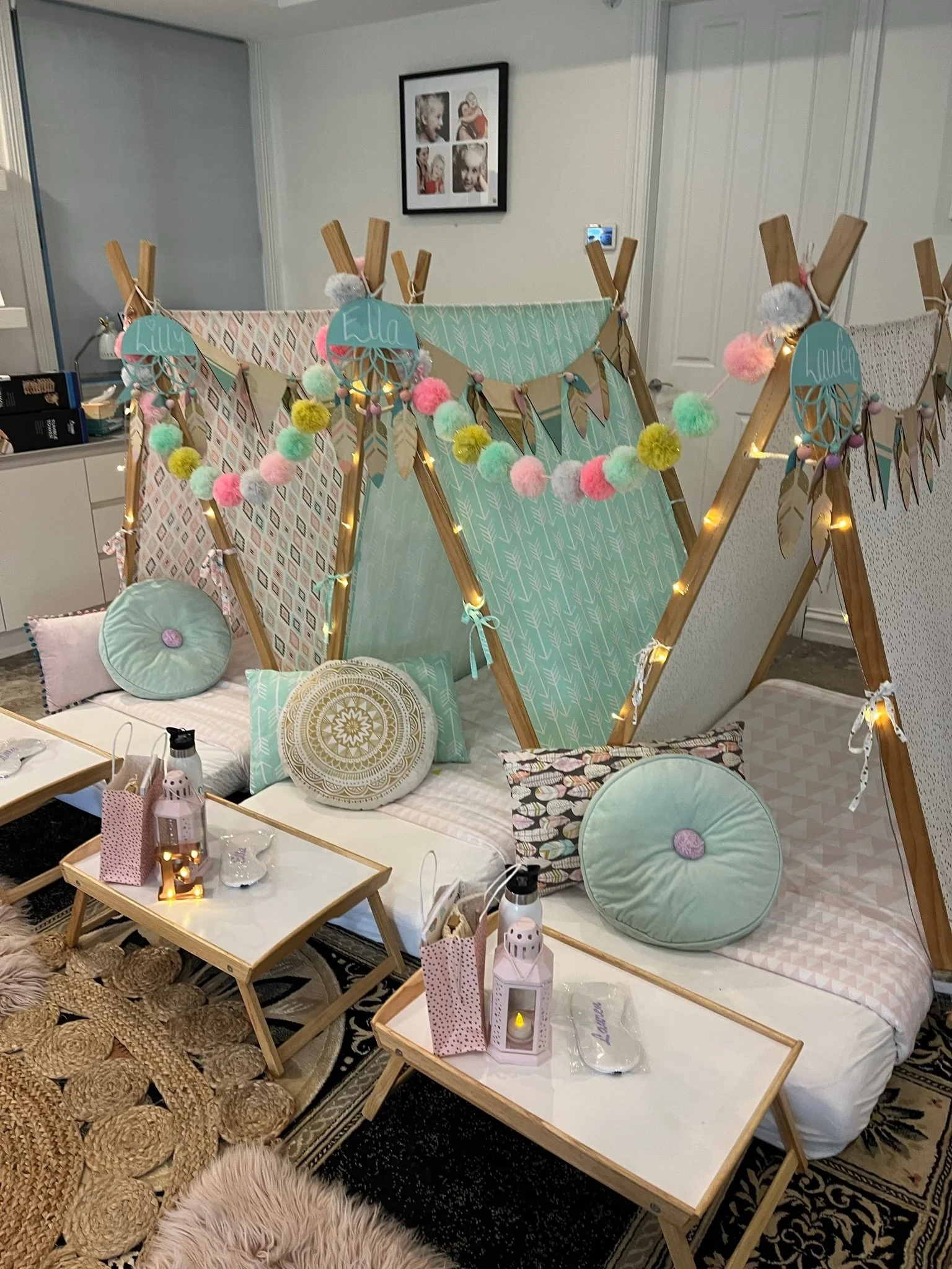 Pretty textured fabrics and finishes fill these teepees and bring magic to your party. With dreamcatchers and lush accessories, this party will take your free spirited guests to a dreamy world.
